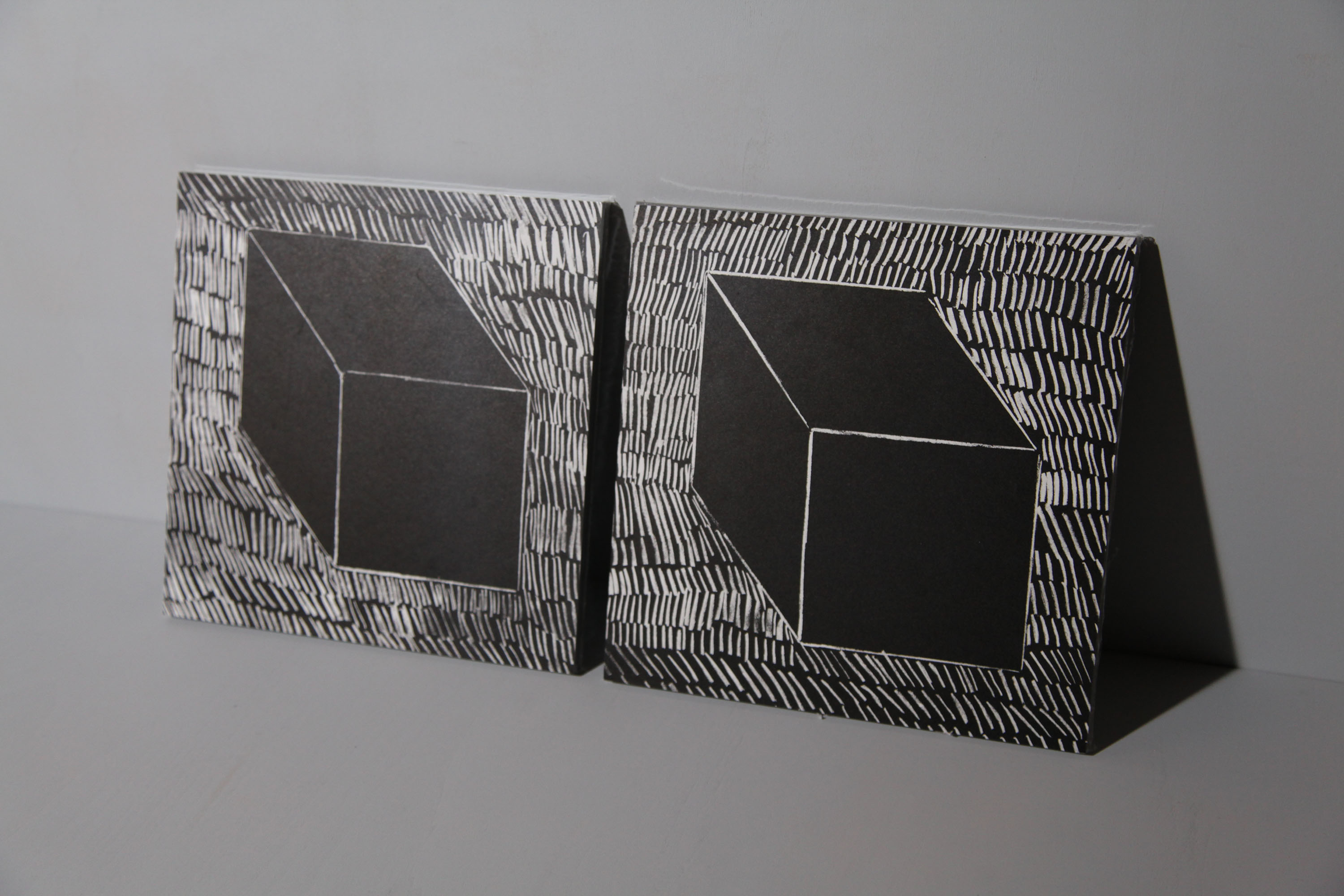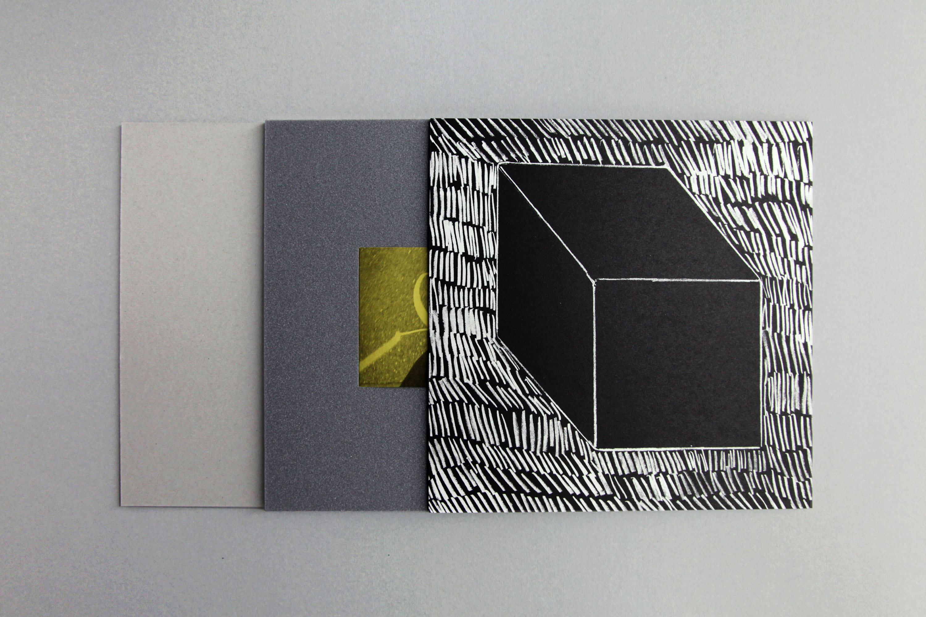 目的なく撮られた写真をまとめてみると、そこには絵につながる残像のようなものが残っていました。まとめられた写真たちもそれぞれに、残像のように重なり合っています。シュリンクパックされており、梱包を解くと全てがバラバラに。リトグラフ印刷された表紙絵は単体でも鑑賞していただけます。60部限定、表紙はAとBの2パターンあり、それぞれに30部制作しました。