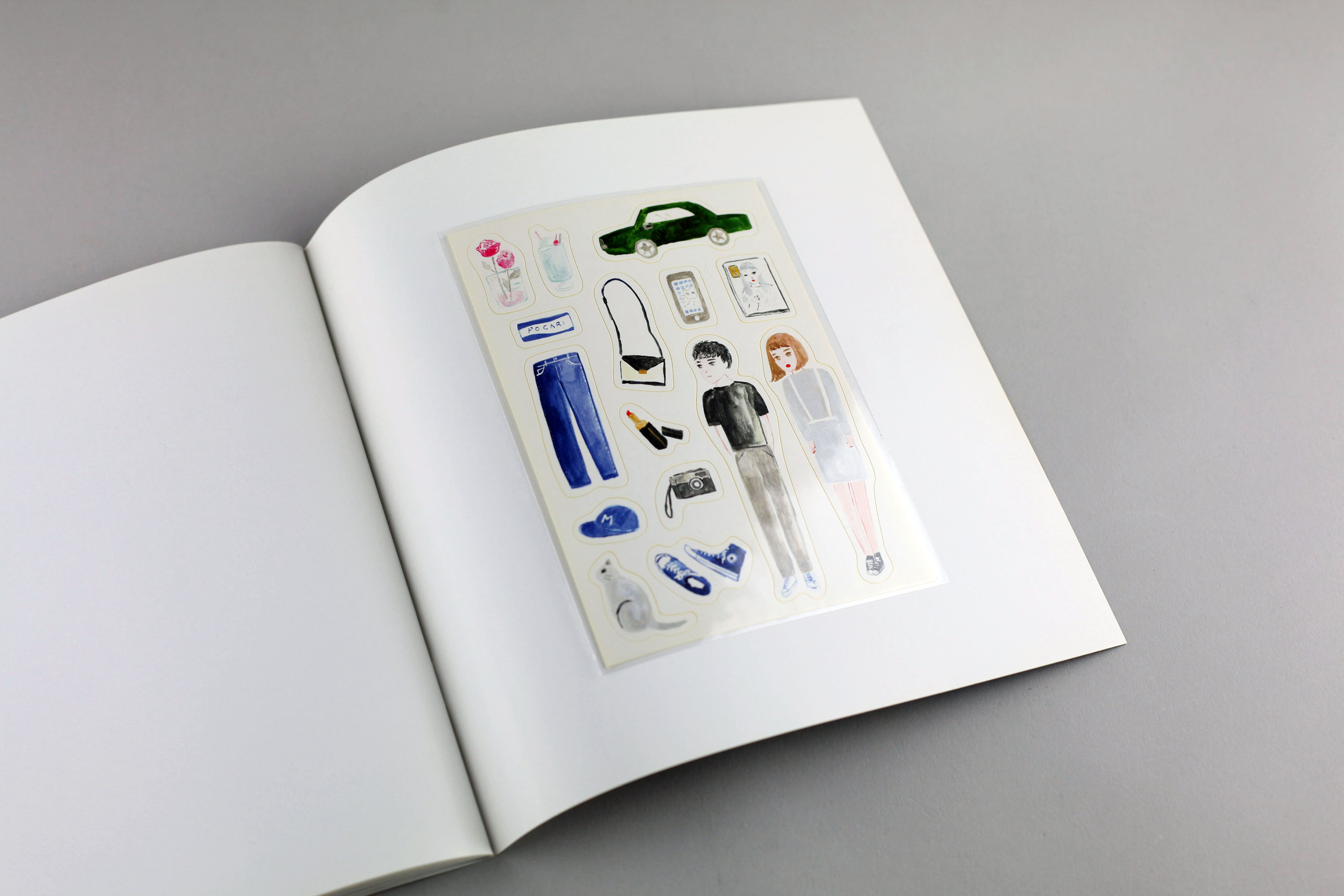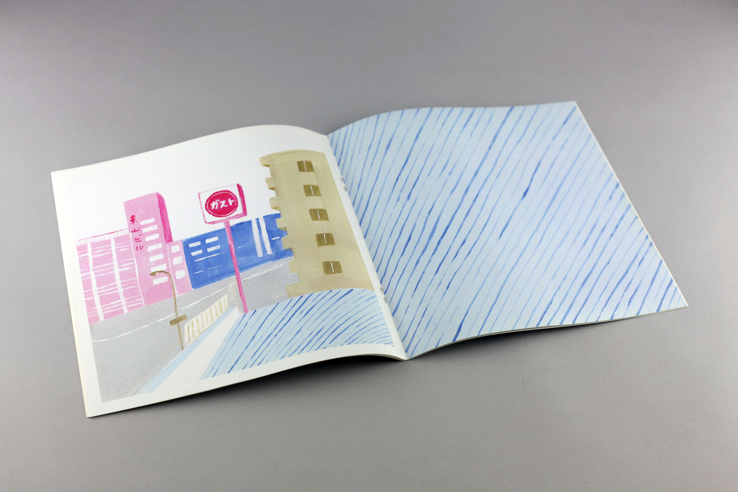 This second book of drawings, following the previsously published black/white book of drawings “Cyan,” is full colored. It is like a photo book in the sense of collecting landscapes, softly and calmly drawn. At the end of the book, you can find stickers to play with the book.