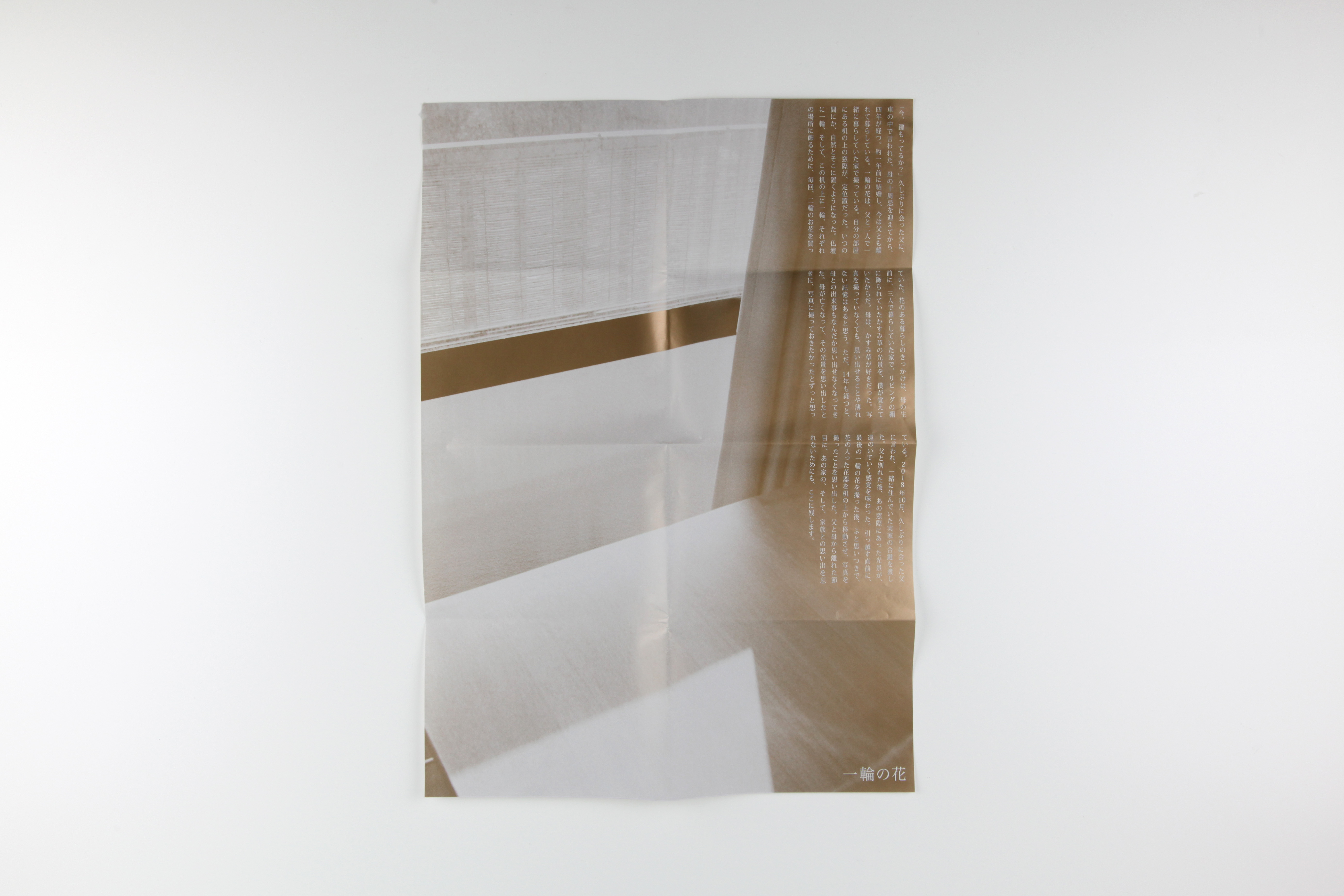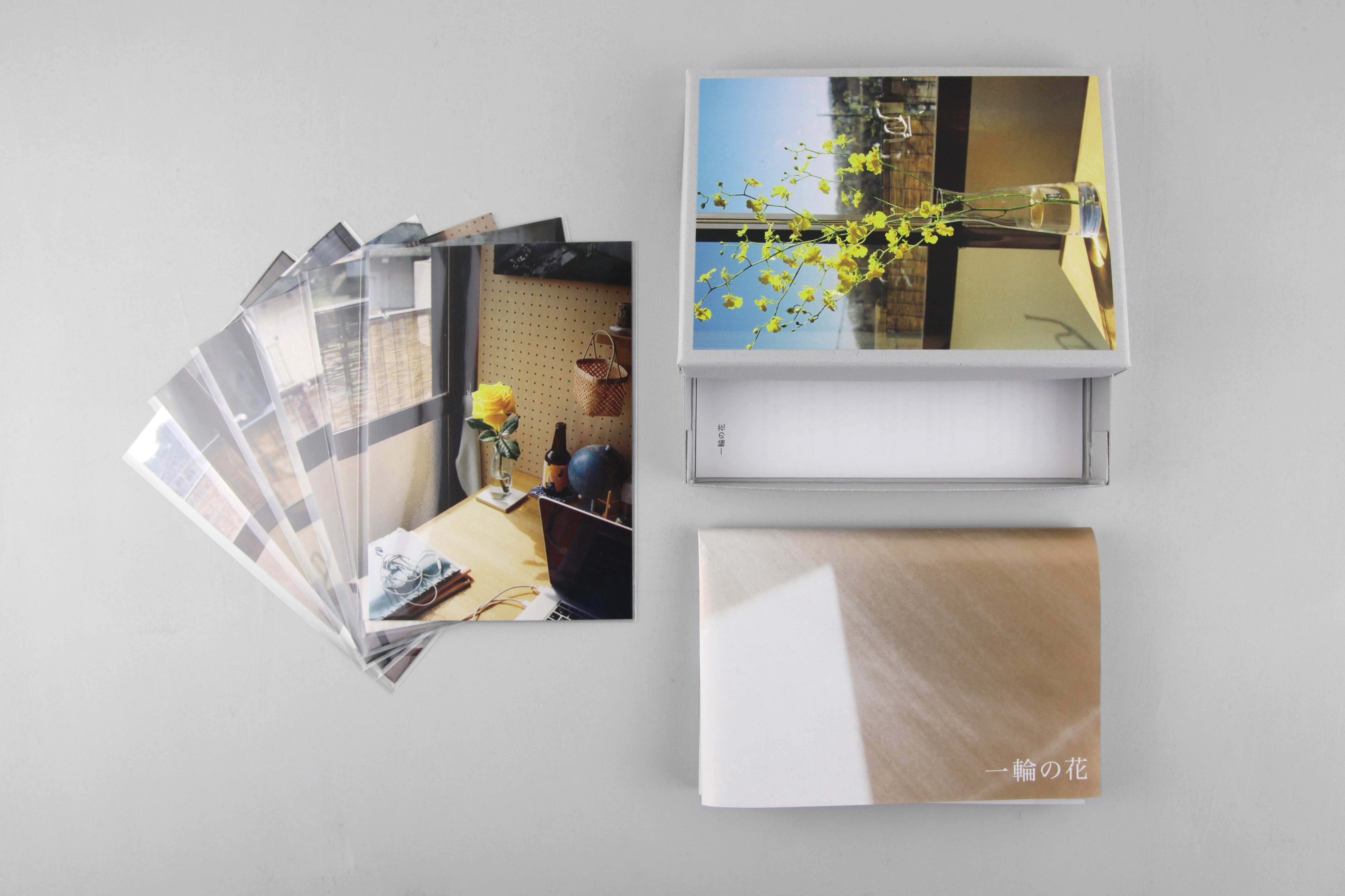亡くなった母に捧げるように花を飾り、撮影してきた写真をまとめた「一輪の花」。4年前に制作したものから内容を新たに、第2段を限定100部で制作しました。BOXにはポストカード、メッセージが綴られたポスター、友岡洋平さん(EETY / EE HANDCRAFTED PRODUCTS)に寄稿していただいたテキストが同封されています。