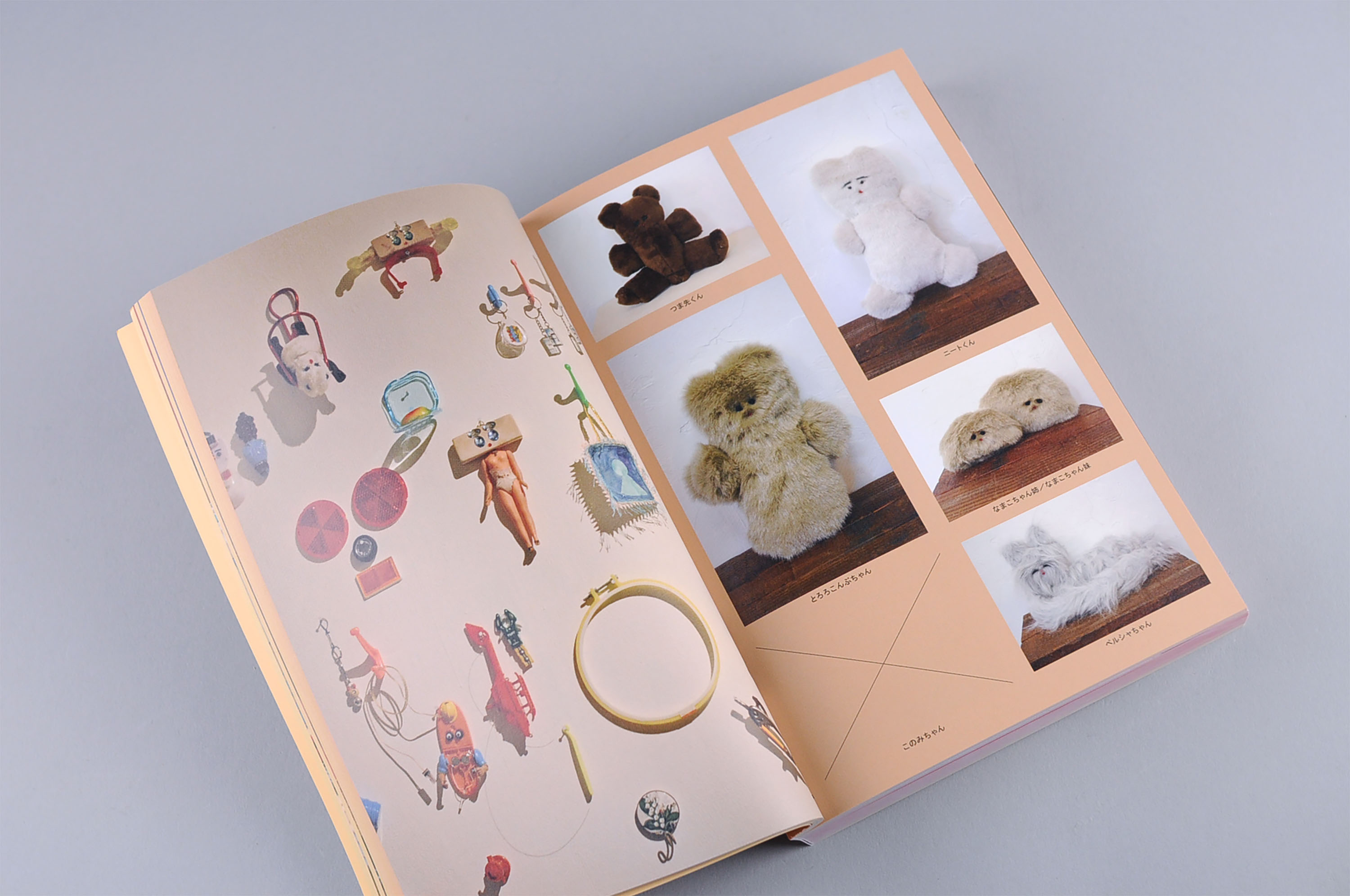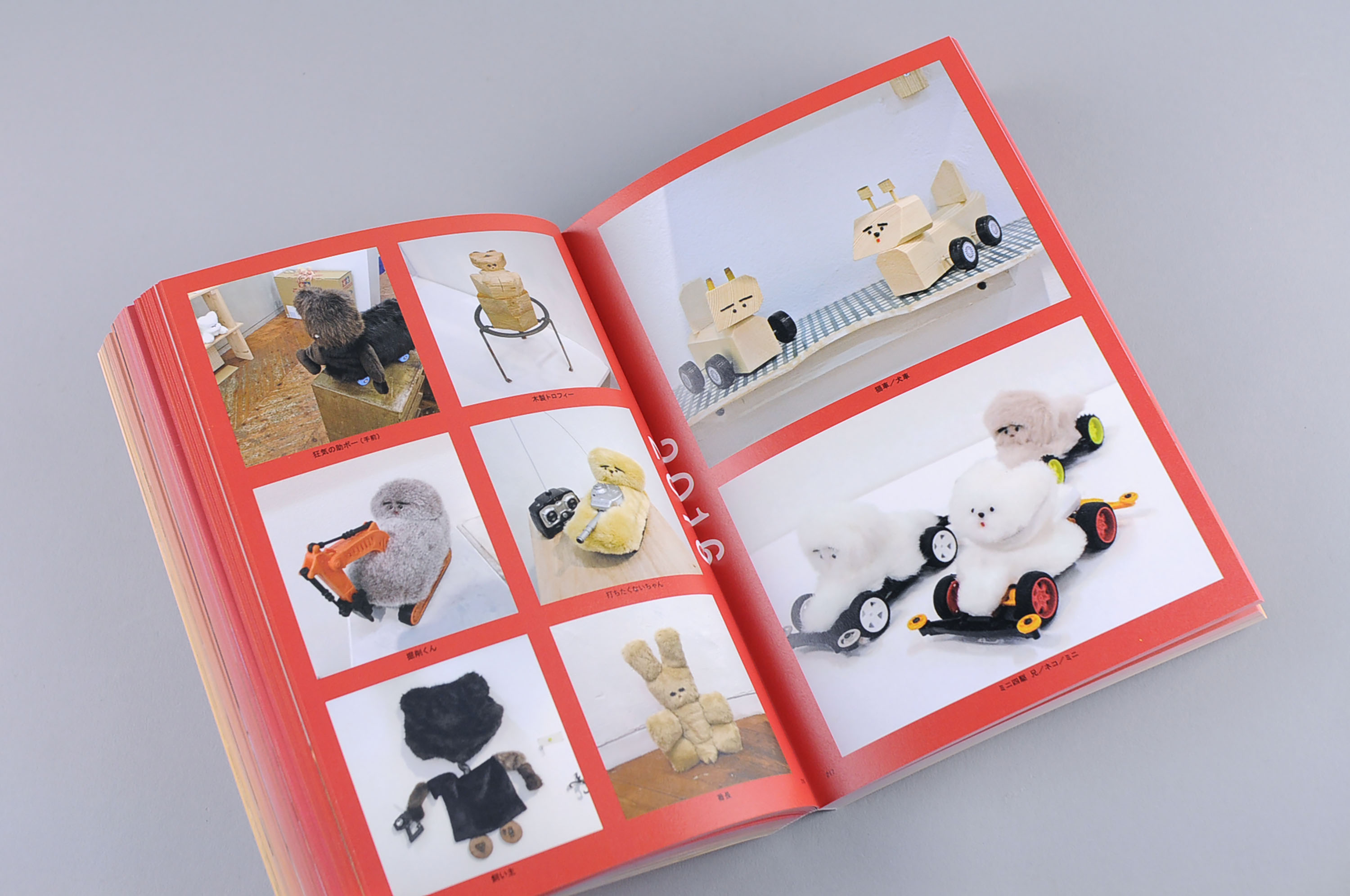 The book of 2500 stuffed animals made by the artist, Meriyasu Katayama, from 2011 to 2018. You can see how the artist's expressions change, which are strong, unrestricted, and of various kinds despite their cute features.