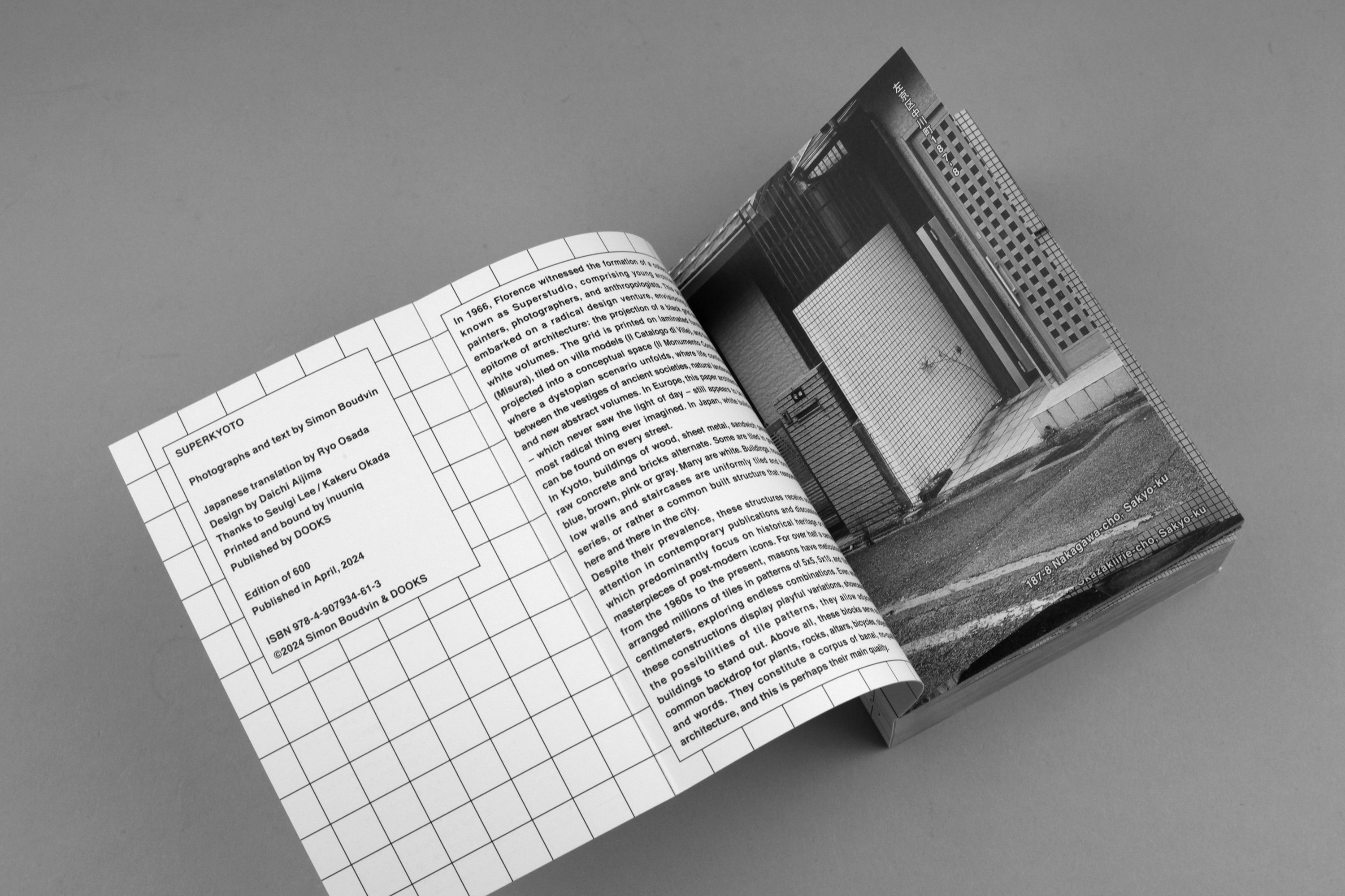 The title “SUPERKYOTO” is taken from the Italian architectural group “Superstudio”, known for their use of a grid pattern. Simon Boudvin spent in Kyoto, photographing many of the city’s tiled buildings. The scene that Superstudio once depicted as an anti-utopia was spread over time in Kyoto, a completely different country. The grid provides a backdrop for many objects and shapes, witnesses to everyday life.